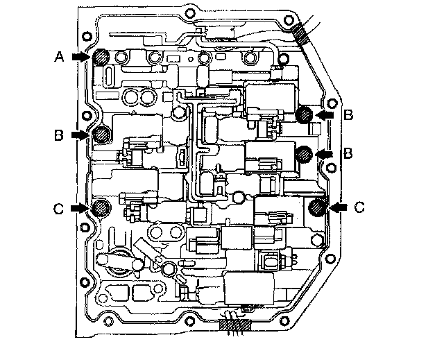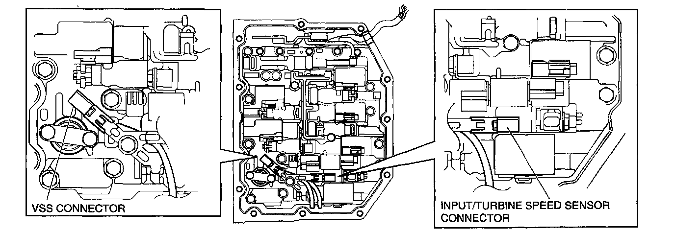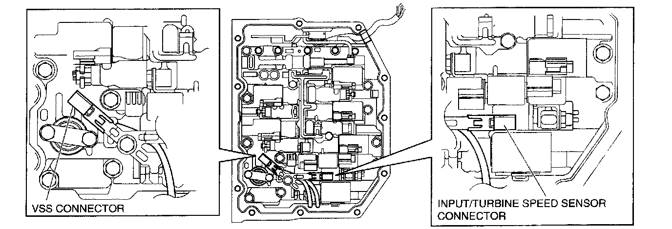 ^ Be sure to secure the VSS and input/turbine speed sensor with tape so that they will not interfere with the control valve body component.