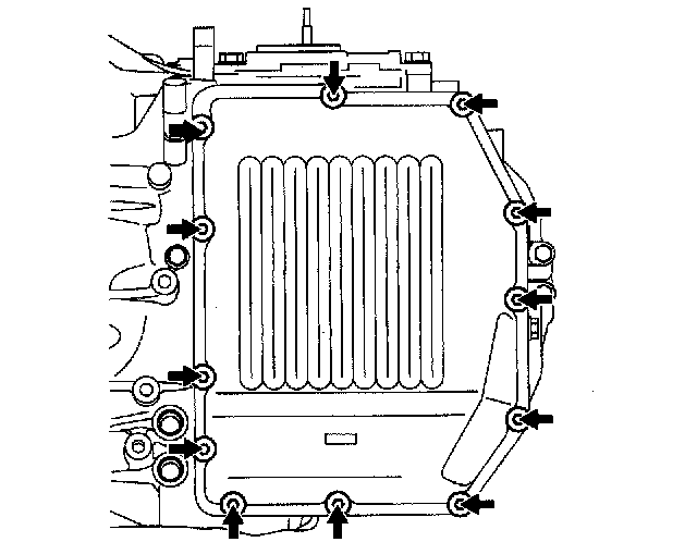 12. Apply sealant to the new control valve body cover as shown in the figure.