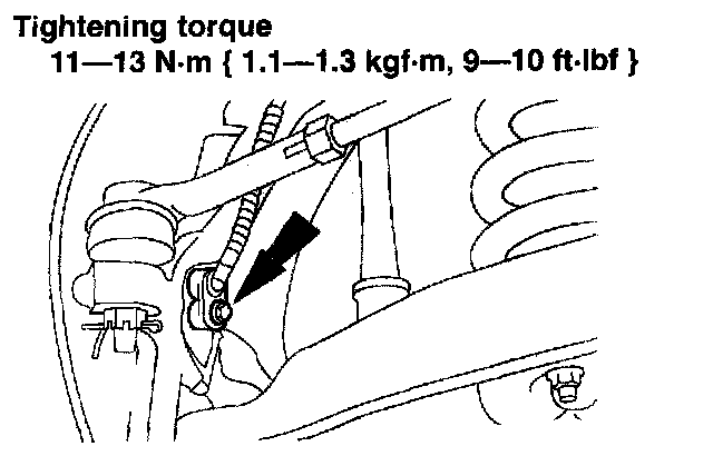 Tightening torque 11 - 13 Nm (1.1 - 1.3 kgf-m, 9 - 10 ft. lbs.)