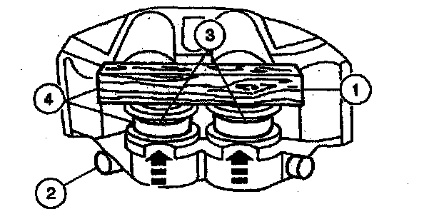 1 Place a block of wood between the caliper bridge and the caliper pistons.