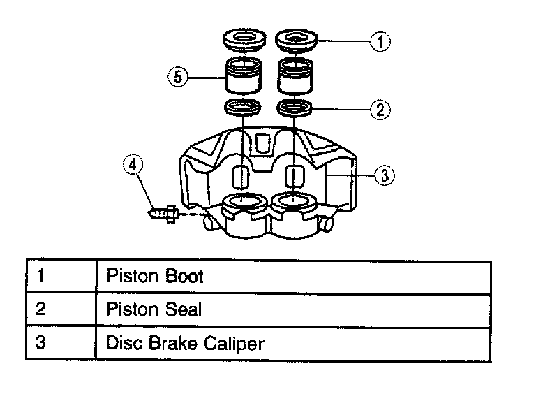 7. Lubricate the piston boot, caliper piston, piston seal, and cylinder bores with appropriate brake fluid.