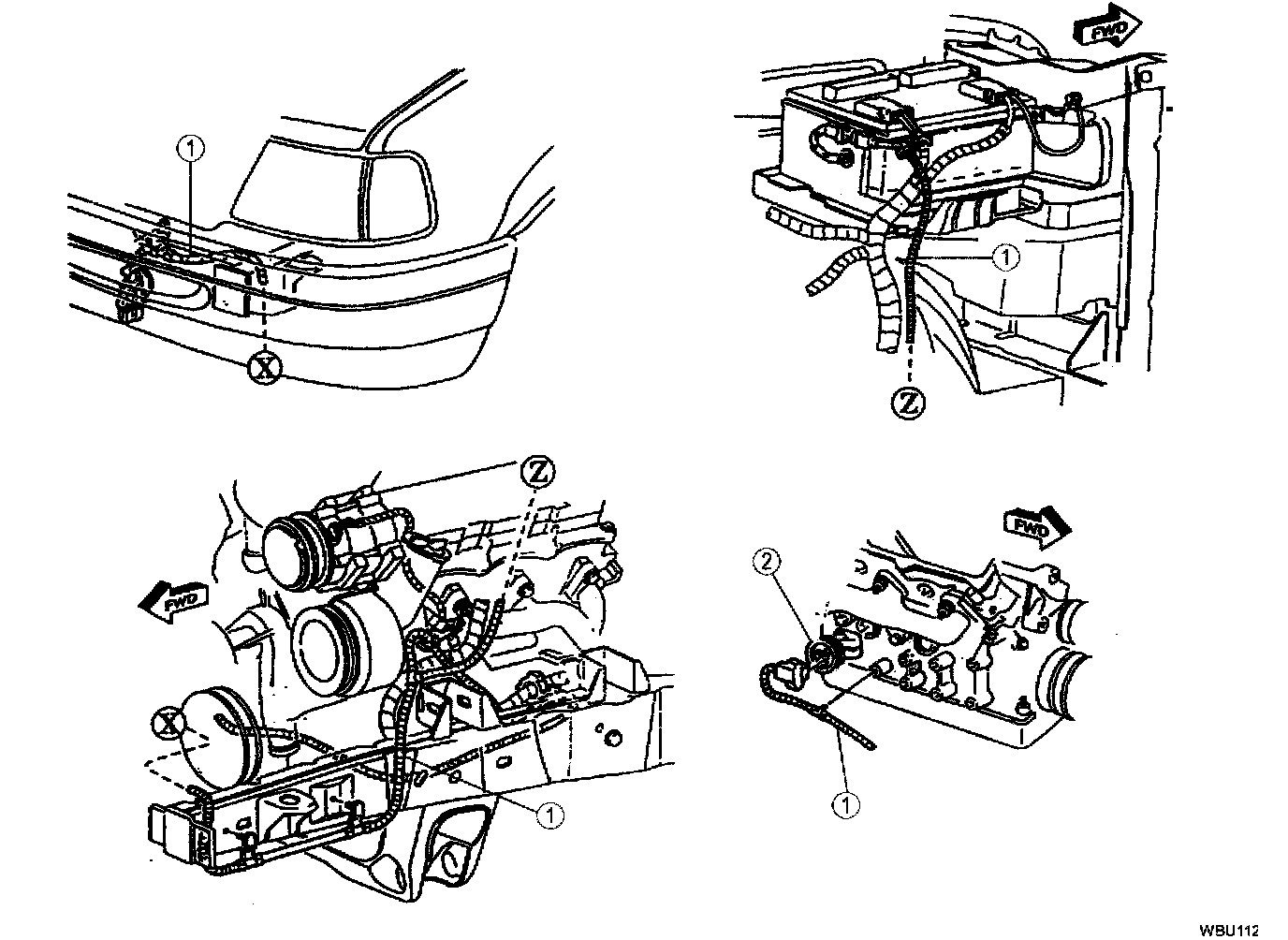 Use door trim panel removing tool or equivalent to remove wiring from battery tray, inner fender, engine mount brackets and cylinder block.