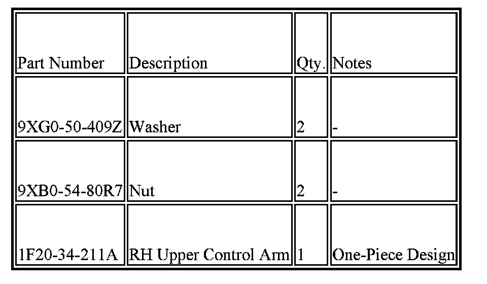 The right hand upper control arm design for torsion bar front suspensions has changed from a two piece design to a single piece design during the 2003 model year. The single piece design is now the only version of the upper control arm available for service of prior model year (1998-2003 Job 1) B-Series Trucks.