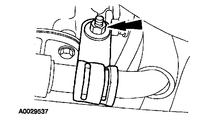 2 Position the drive belt tensioner and install the bolt.
