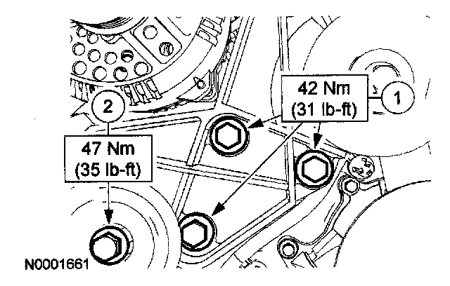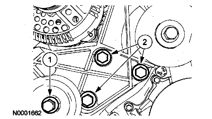 6. Remove the lower cylinder block cradle-to-engine front cover bolts.