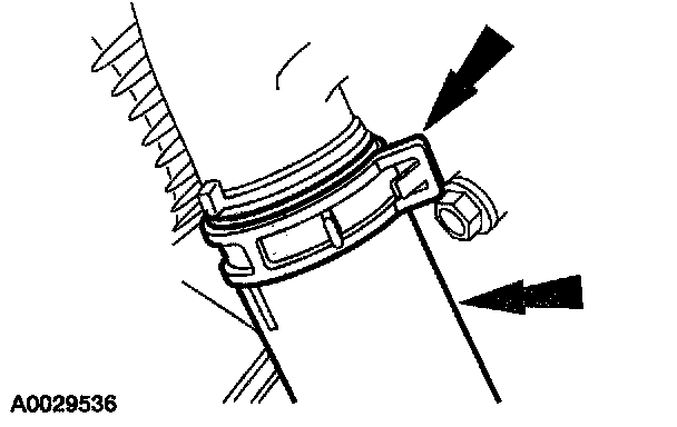 6. Install the lower radiator hose and clamp.