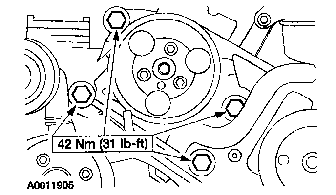 14. Install the accessory bracket bolts.