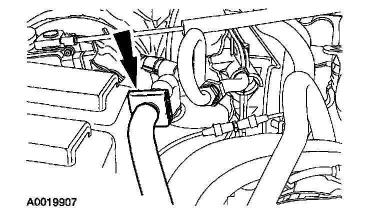 6. Disconnect the compressor manifold and tube assembly spring lock coupling from the suction accumulator. See A/C SPRING LOCK COUPLING.