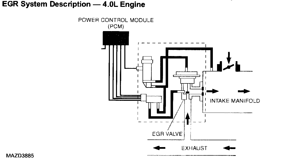 - The 4.0L engine, the powertrain control module (PCM) controls the EGR vacuum regulator solenoid. The EGR vacuum regulator solenoid controls the vacuum to the EGR valve. When the EGR valve opens, exhaust gas flows to the intake manifold to be returned to the combustion cycle. The differential pressure feedback EGR system monitors the flow and returns a signal to the powertrain control module (PCM).