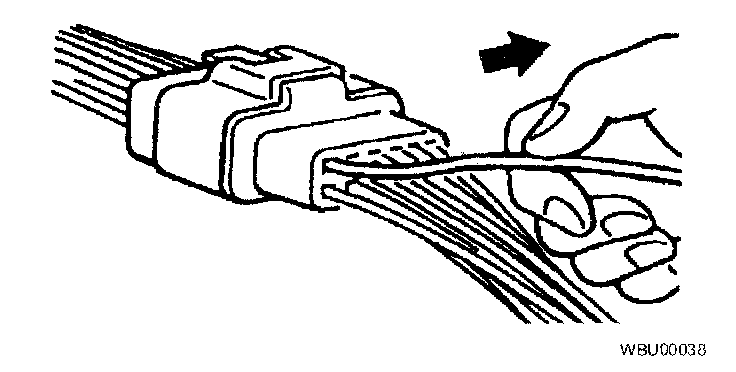 - Insert a thin piece of metal from the terminal side of the connector and with the terminal locking tab pressed down pull the terminal out from the connector.
