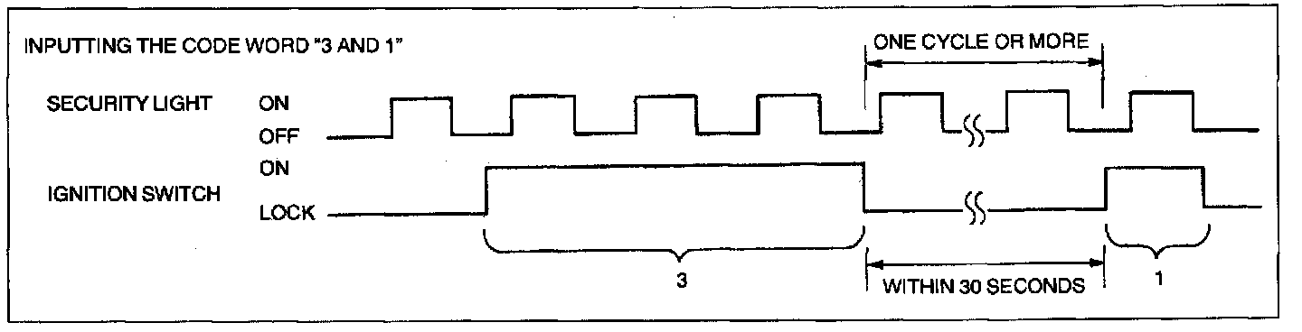 NOTE: If the code word is not input correctly, the security light goes out after all eight digits are input. In this case, perform the "Code Word Input Error Recovery Procedure."