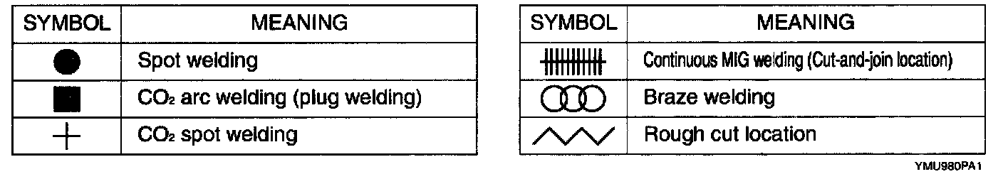 The given 6 symbols are used to indicate the type of weld that is used when replacing body panels.