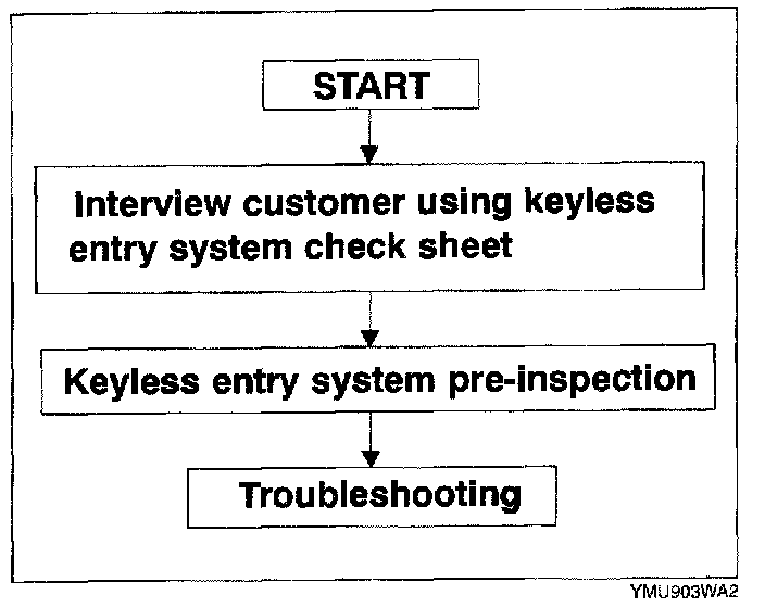 Go to troubleshooting after identifying the specific malfunction by doing a keyless entry system preliminary inspection.