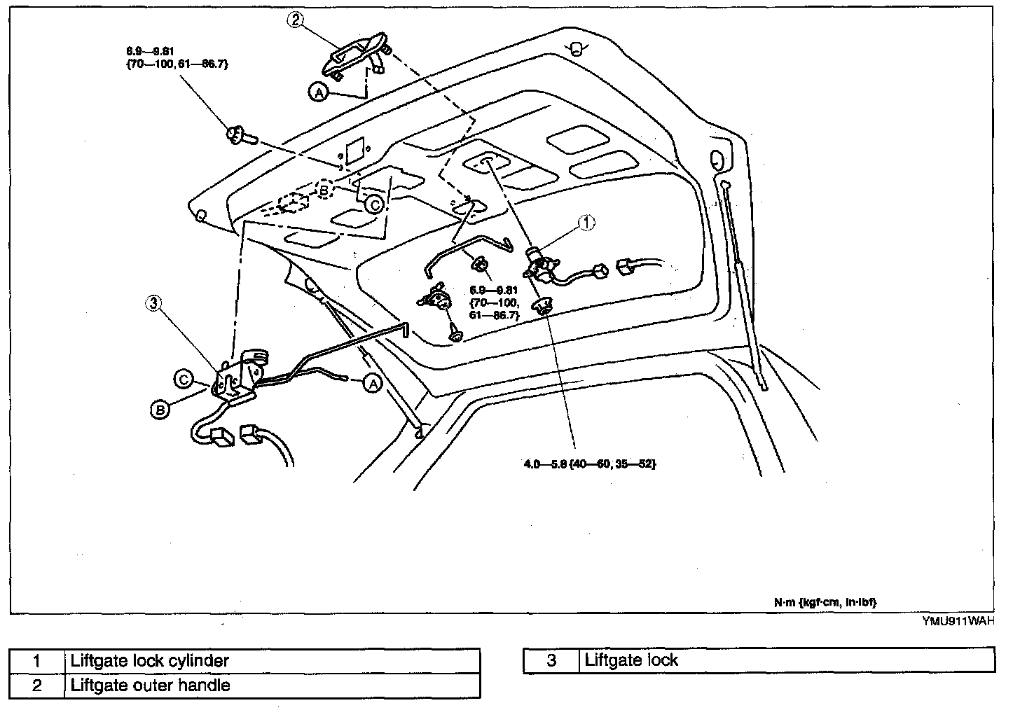 LIFTGATE LOCK AND OPENER REMOVAL/INSTALLATION1. Disconnect the negative battery cable.
