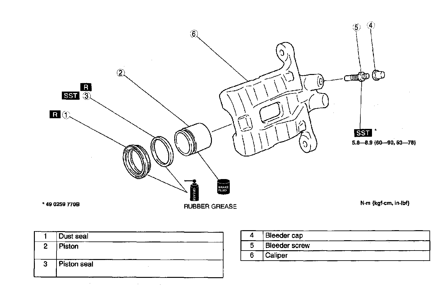 CALIPER (REAR) DISASSEMBLY/ASSEMBLY1. Disassemble in the order indicated in the table.
