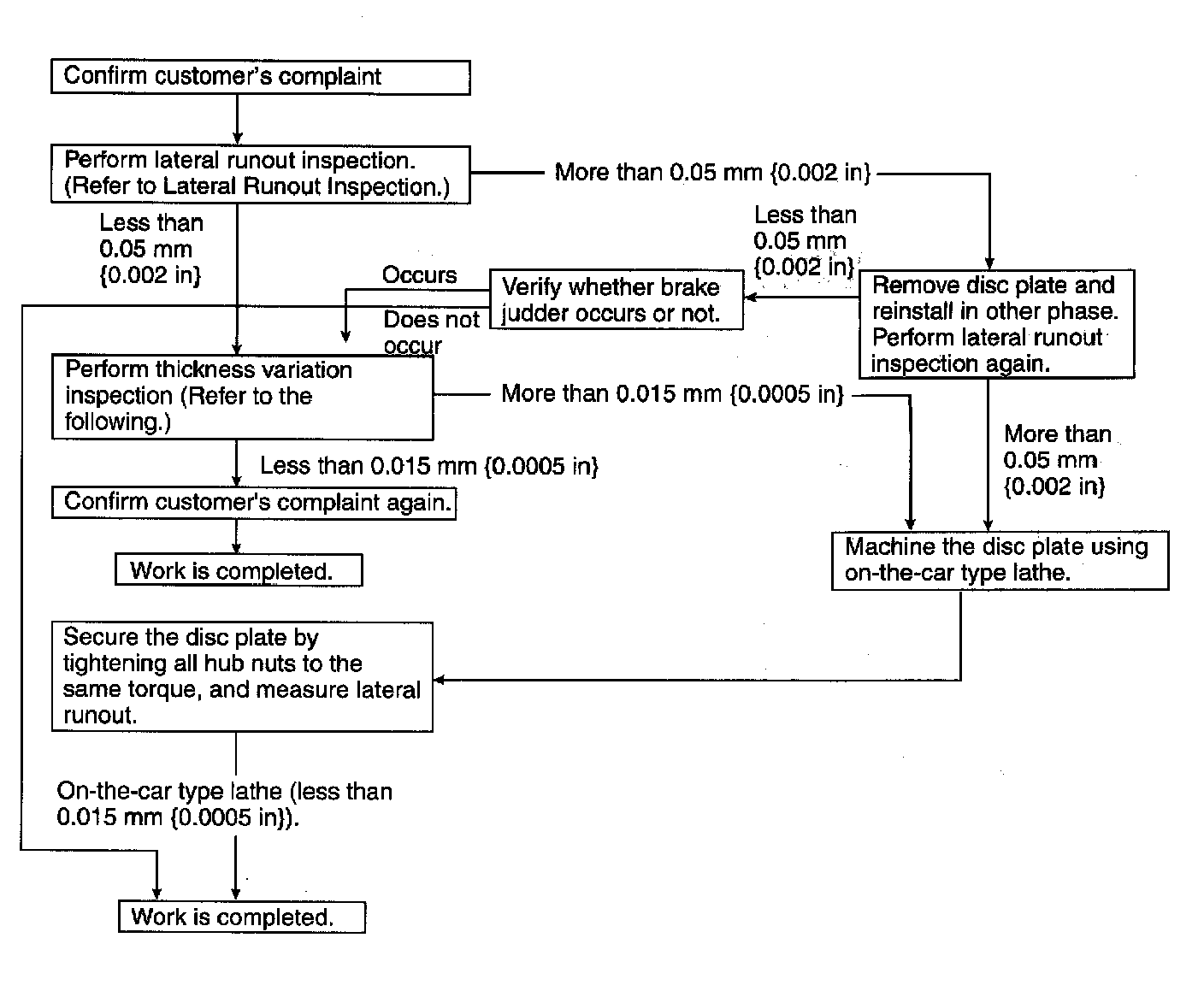 ^ Excessive runout may result if the disc plate is removed from the vehicle then machined. Machine the disc plate while installed on the vehicle.