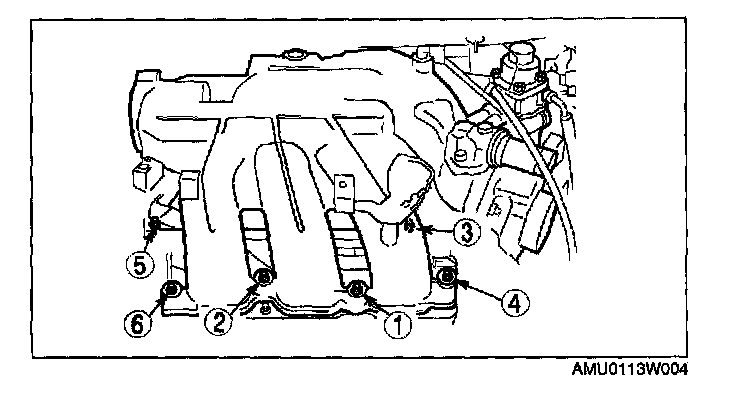1. Tighten the intake manifold installation bolts in the order indicated.