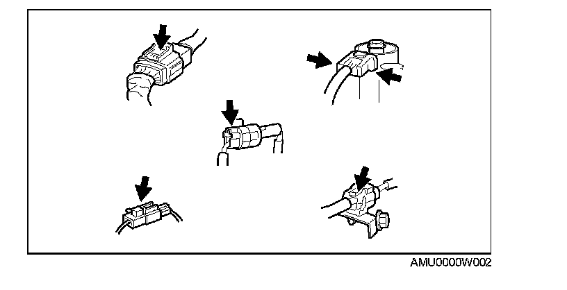 ^ Inspect the terminals of waterproof connectors from the connector side since they cannot be accessed from the wiring harness side.