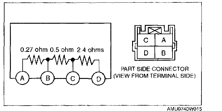 Verify that the resistance between the terminals of the front resistor is as shown in the table.