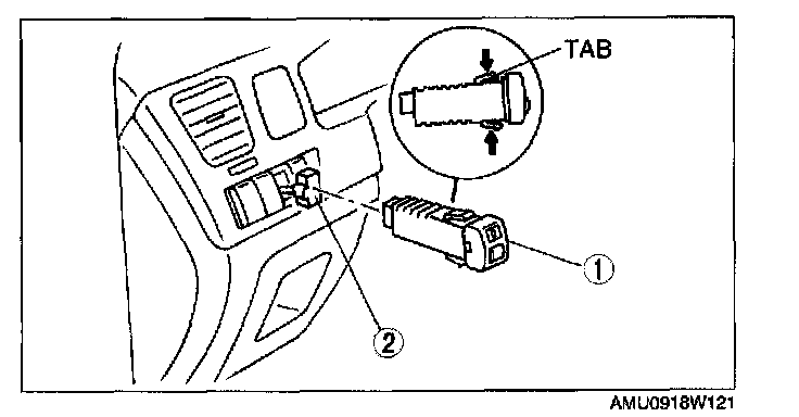 1. Insert your hand into the hole in the driver-side side panel, grasp the tabs of the panel light control switch and pull it forward to remove.