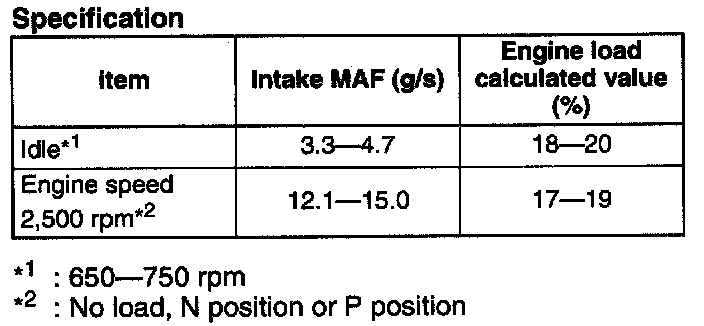 - If not as specified, perform the "MAF Sensor Circuit Open/Short Inspection".