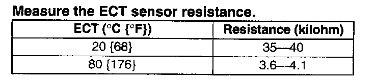 ENGINE COOLANT TEMPERATURE (ECT) SENSOR INSPECTIONNOTE: Perform the following test only when directed.