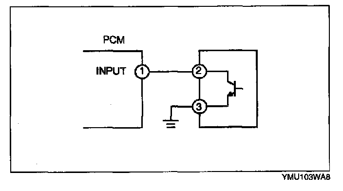 1. Measure the #1 PCM terminal voltage and confirm that it is at 0 V or 5 V when the ignition key at ON and the engine at idle.