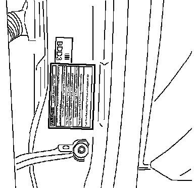 5. Place the "Authorized Modifications" label on the "A" pillar below the tear tag in the driver door jamb.