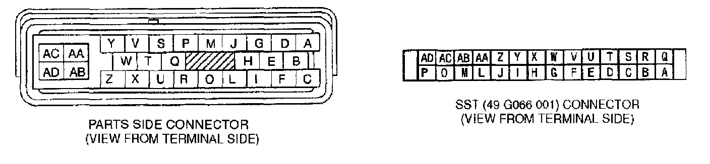 (Ignition switch is at ON, and connector is connected unless indicated otherwise)