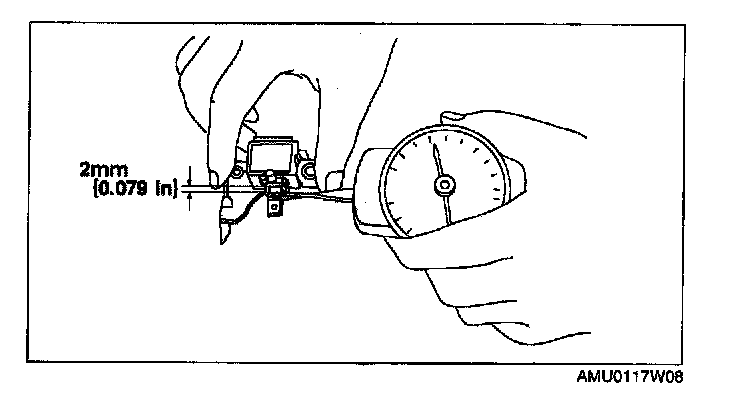 2. Read the spring pressure gauge at the brush tip projection of 2 mm {0.079 in}.