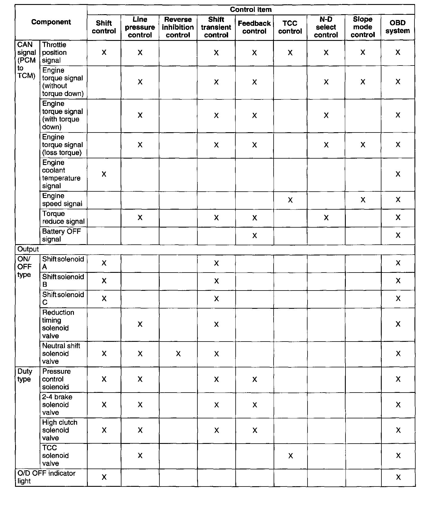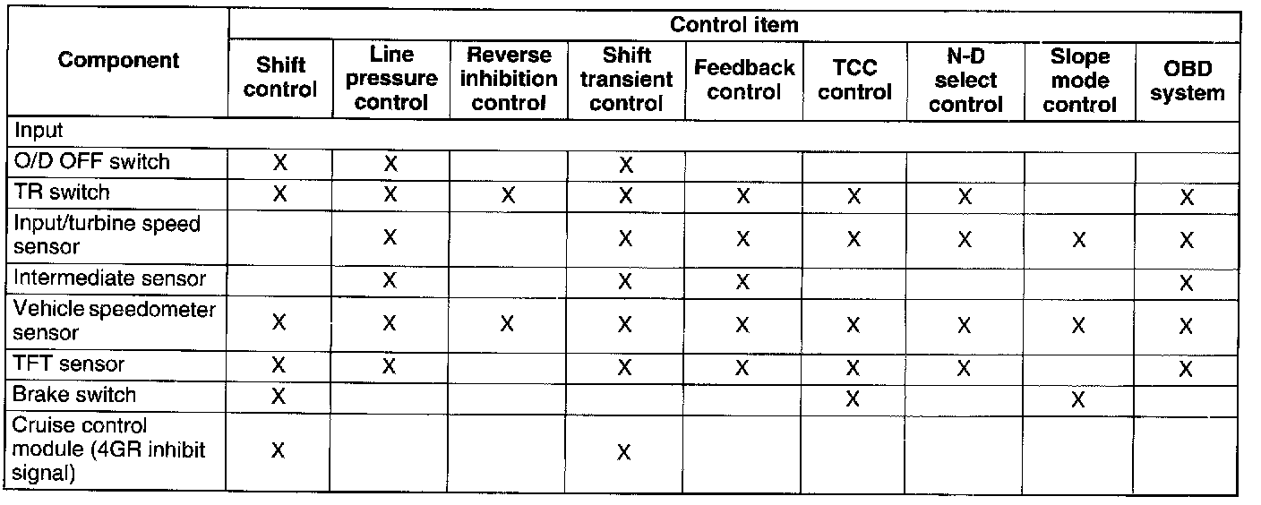 Automatic Transaxle Device Relationship Chart