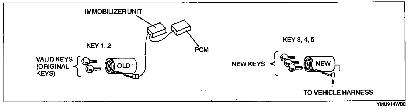 - The immobilizer unit and PCM should not be newly replaced as a trial during troubleshooting. If this is done, the ID and code word will be programmed into the new unit and it cannot be used for other cars even if you find that the old unit was normal.