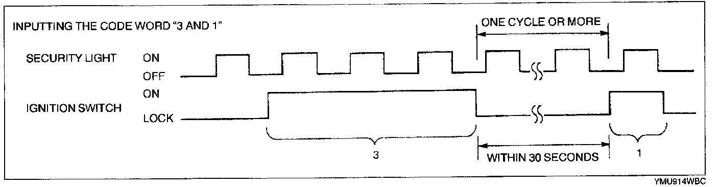 NOTE: If the code word is not input correctly, the security light goes out after all eight digits are input In this case, perform the "Code Word Input Error Recovery Procedure".