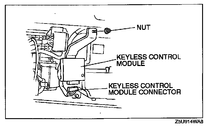4. Remove the nut to remove the keyless control module and the bracket as a module.