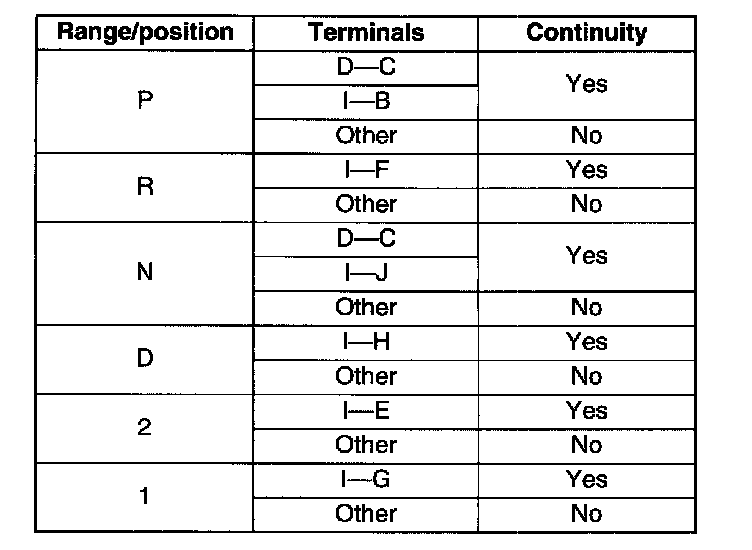 TRANSMISSION RANGE (TR) SWITCH INSPECTIONInspection of Operation