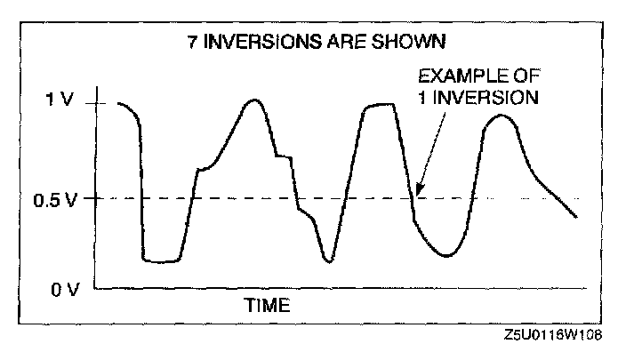 8. Count the number of times (inversions) that the upstream HO2S graph line actually crosses the 0.5 V line.