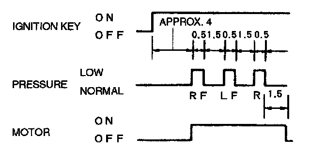 4. With the brake pedal still depressed, turn the ignition switch on and verify that the brake is released momentarily (approximately 0.5 seconds) and that the wheel turns when pressure-reduction operates.