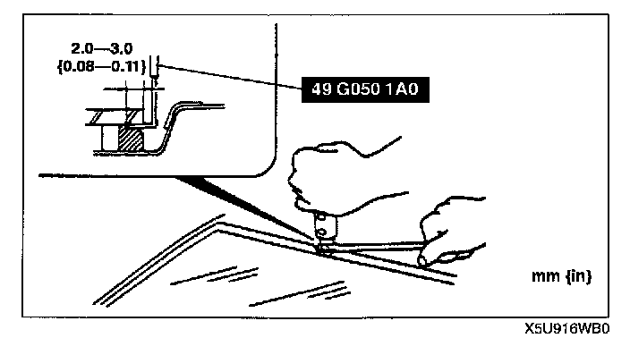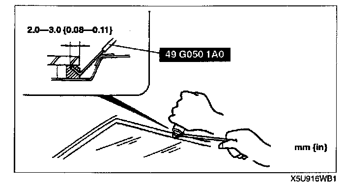 8. Apply a 3.0 mm {0.12 in} bead of sealant between the glass and the body.