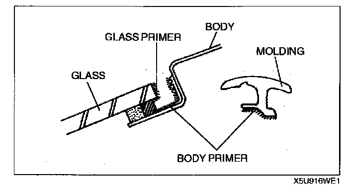 CAUTION: Keep the area free of dirt and grease and do not touch the surface or the primer may not properly bond to the surface of the glass and body which may cause leaks to occur.