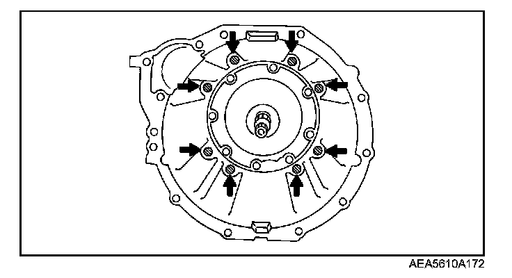 11. Apply ATF to the retaining plate, driven plates, and the drive plates, and install them to the transmission case in the following order: