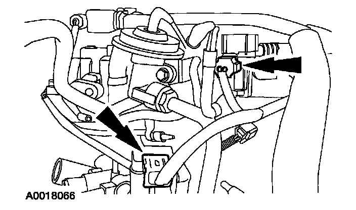 3. Disconnect the exhaust gas regulation (EGR) vacuum regulator and the differential pressure feedback EGR electrical connectors.