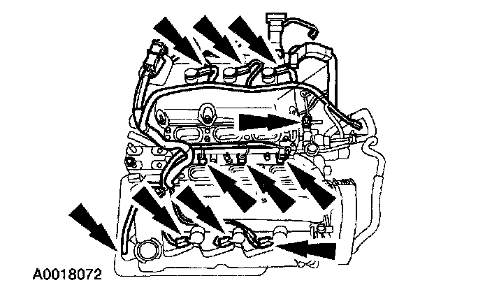 1. Separate the engine control sensor wiring connectors from the upper intake manifold.