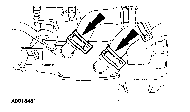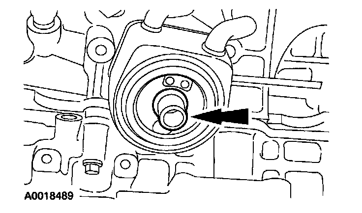 22. Disconnect the coolant hoses at the oil cooler.