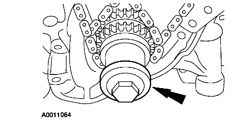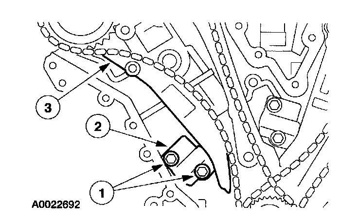 44. Remove the bolts, RH timing chain guide and the timing chain.