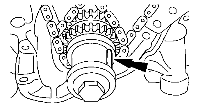 40. Rotate the crankshaft clockwise to position the crankshaft keyway in the 11 o'clock position and position the camshafts in the correct position. This will position the number one cylinder at top dead center (TDC).