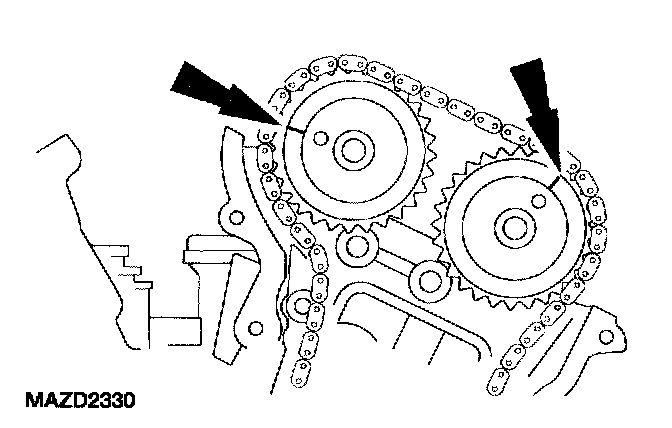 ^ Verify that the camshafts are correctly located. If not, rotate the crankshaft one additional turn and re-check.