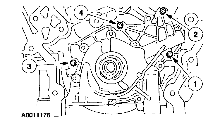 57. Remove the bolts in the indicated sequence and remove the oil pump.