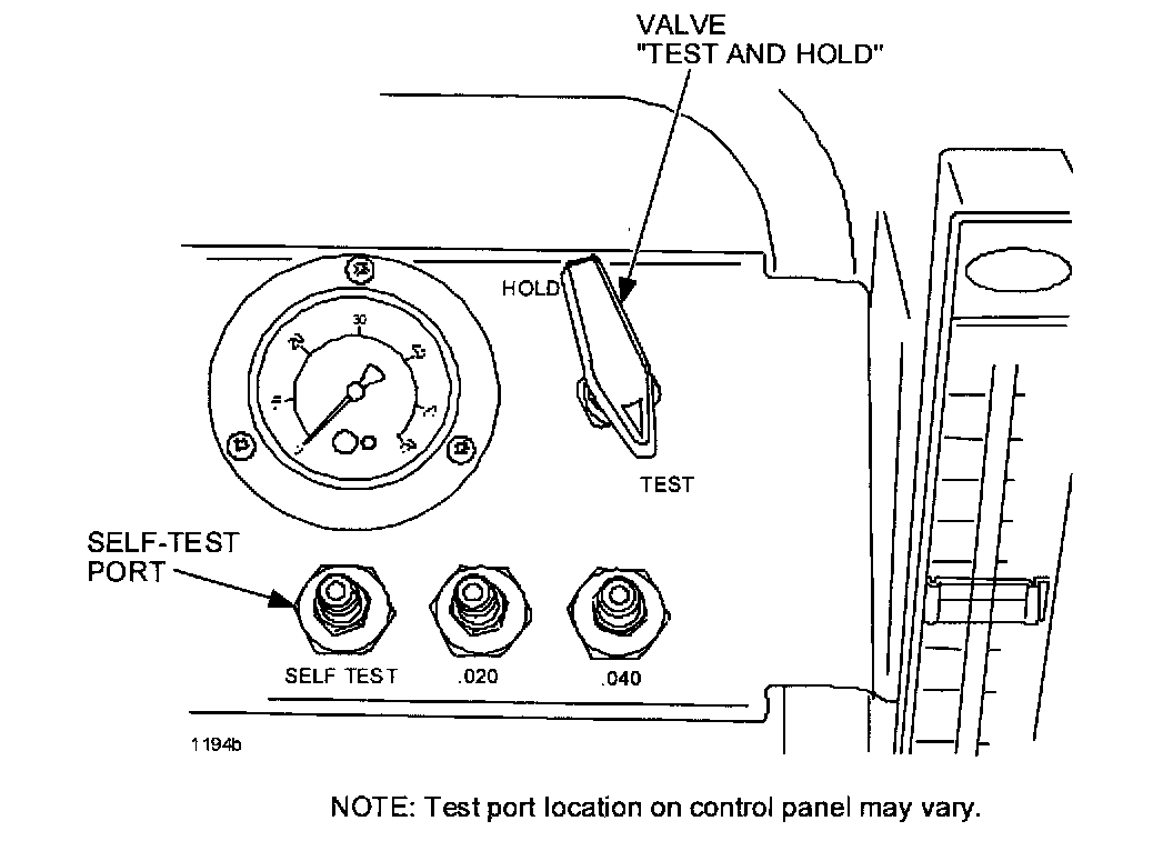 b. Place the tester hose on the "Self Test" fitting on the control panel.