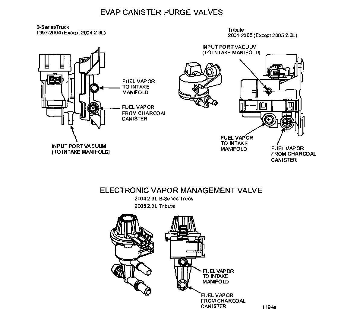 Be careful when connecting the EVAP tester hose. On B-Series Trucks it is easy to cross thread due to the angle of the test fitting. On Tribute 2.3L be careful to route the EVAP tester hose so it does not contact the exhaust.
