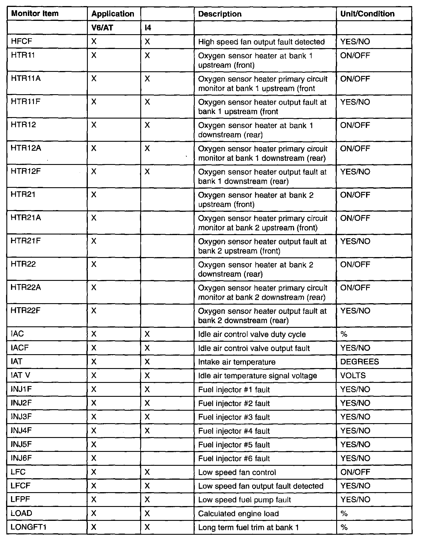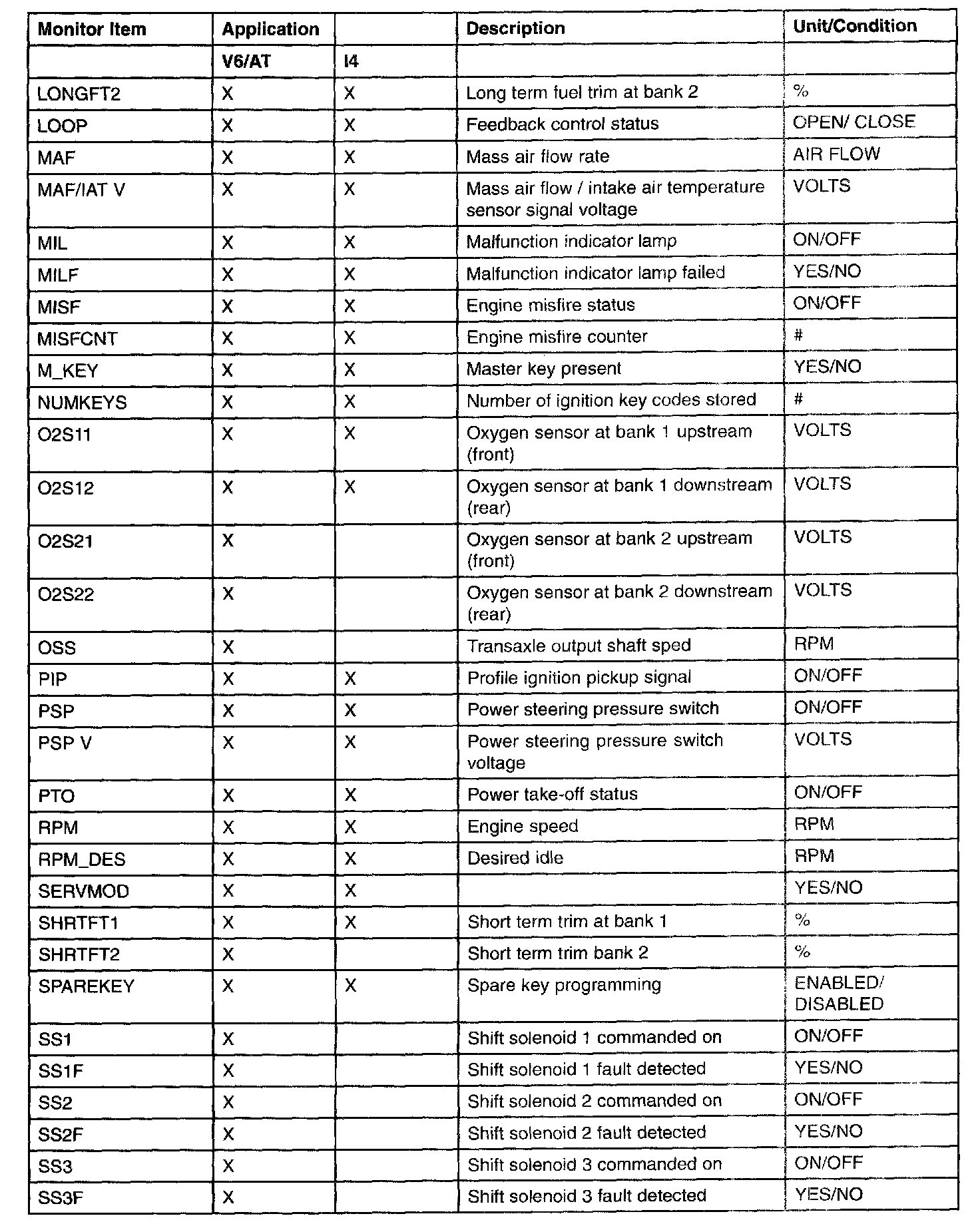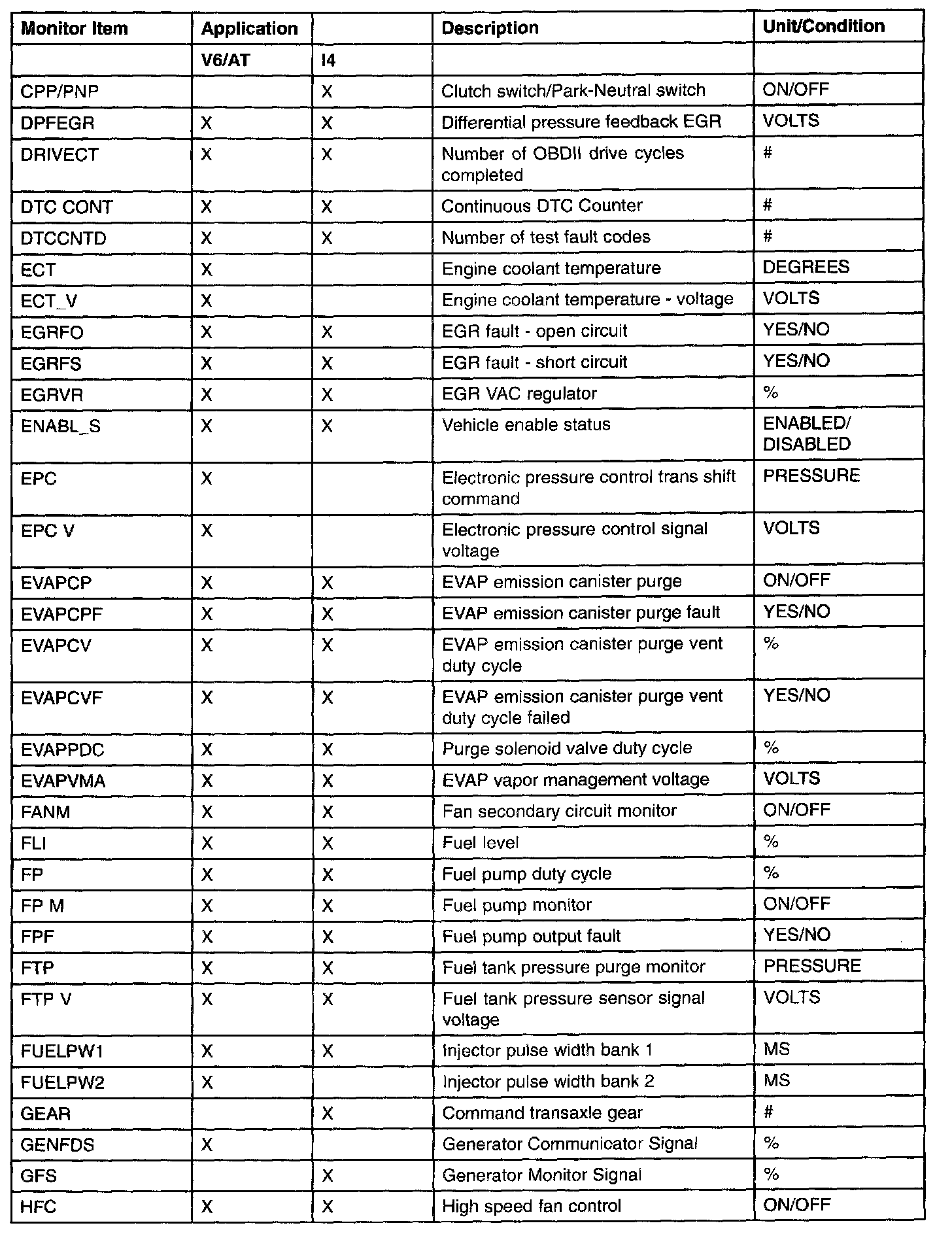 PID/Data Monitor Item Table Part 4: